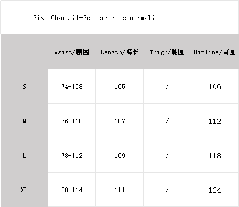 XL:Length 111  Waist 80-114  Hip 124 cm